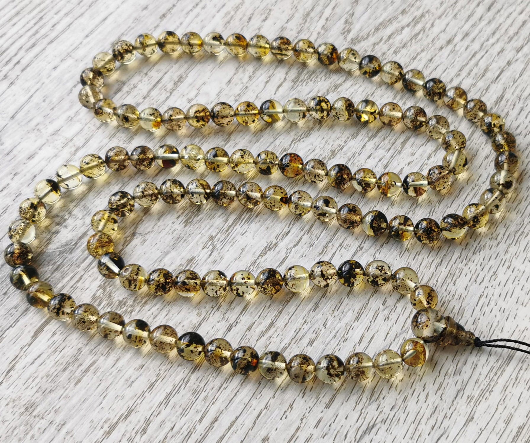 108 顆琥珀瑪拉佛教念珠,由拋光的天然波羅的海琥珀圓珠製成。