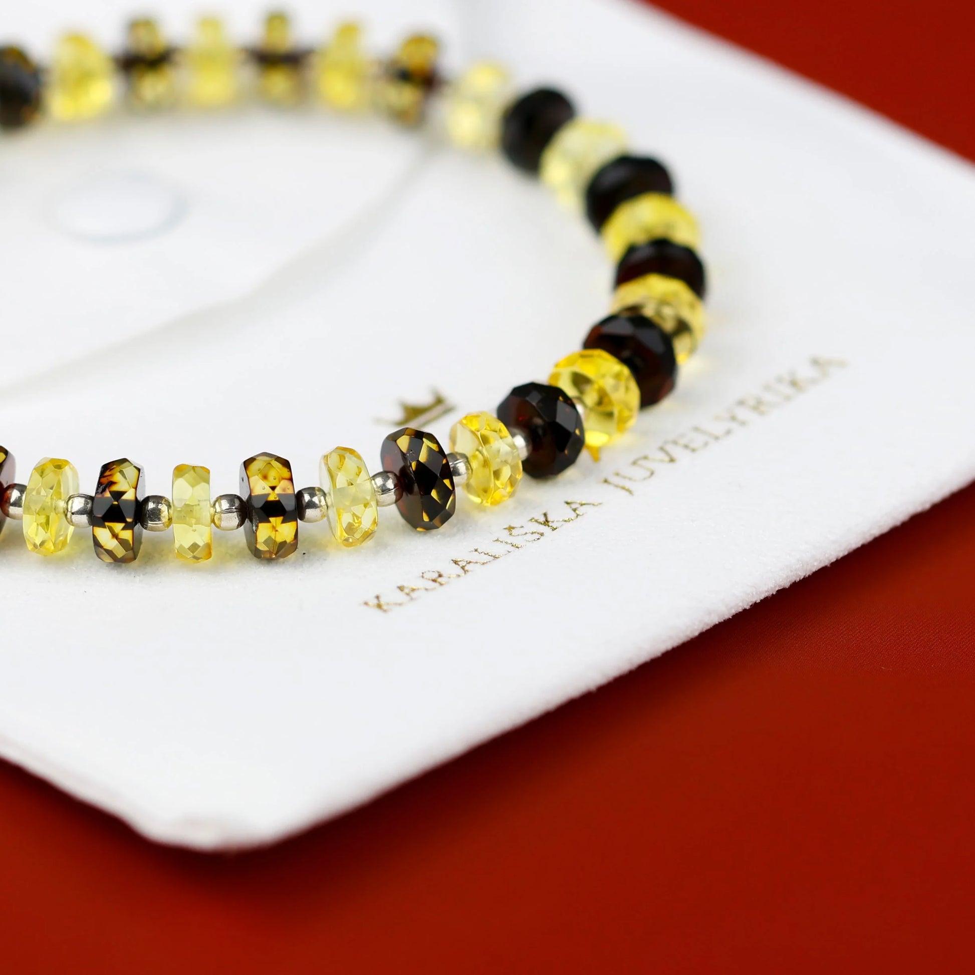 多色調切面天然琥珀珠,展現溫潤自然的光澤。