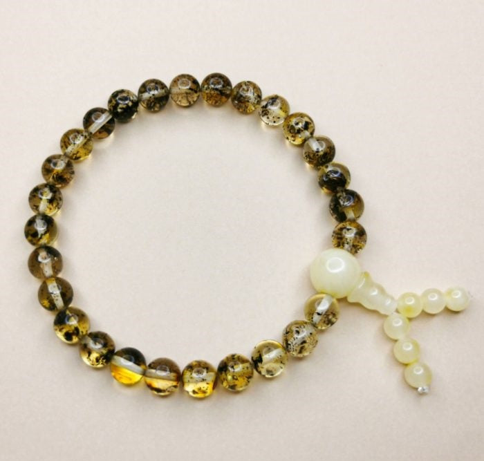 琥珀念珠手鍊 – 27 琥珀念珠佛教手鍊,飾有拋光天然波羅的海琥珀圓珠。